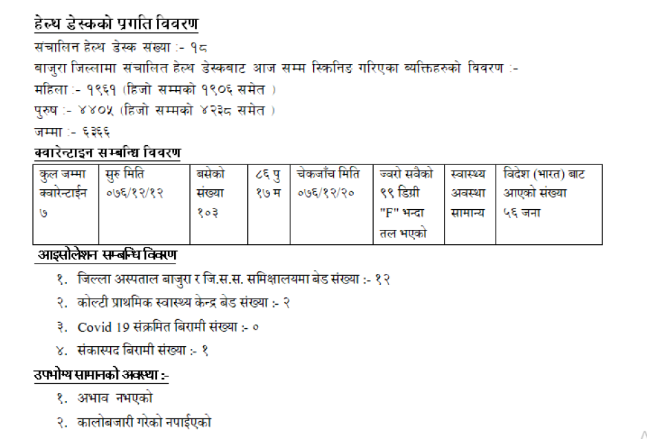 COVID-19 सम्बन्धि विवरण २०७६/१२/२०