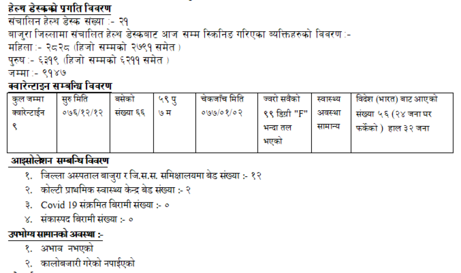 COVID-19 सम्बन्धि विवरण २०७७/०१/०२