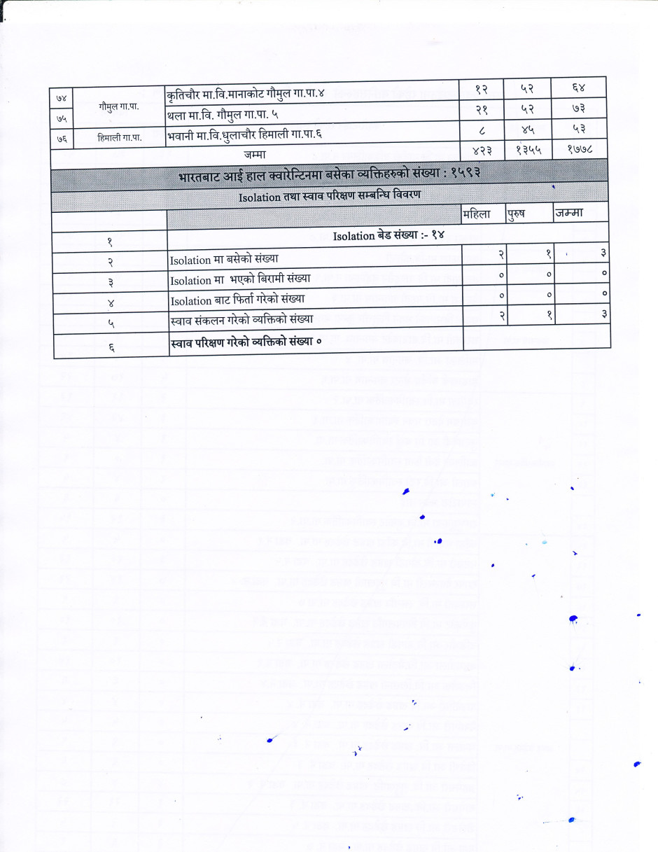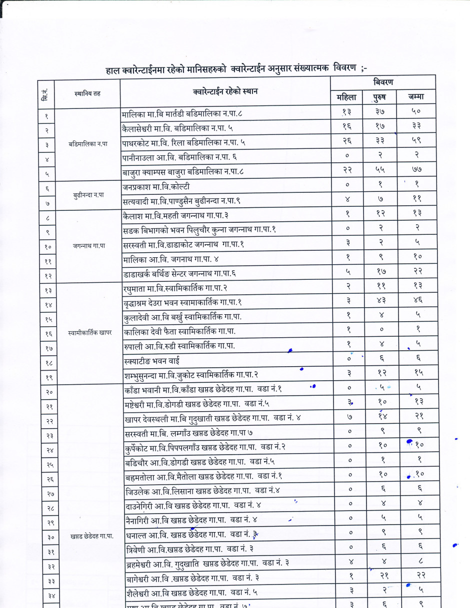 क्वारेन्टिन तथा आईसोलेसन सम्बन्धि जानकारी २०७७/०२/१६ गते बाजुरा ।