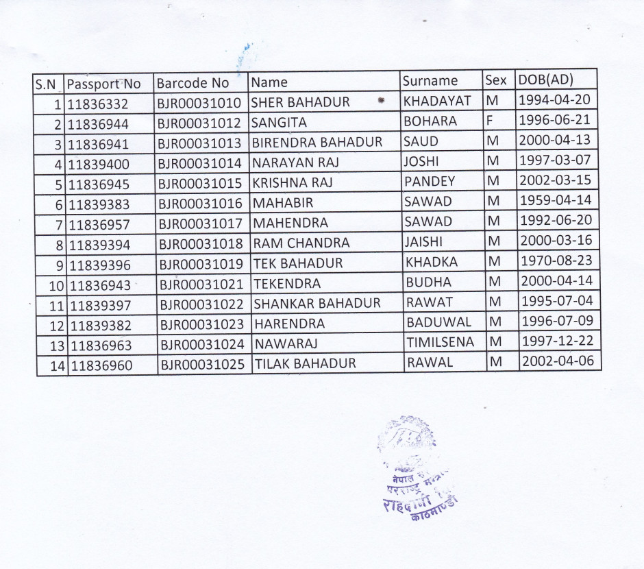 मिति २०७६/११/०६ गते बनेर आएका राहदानीहरु