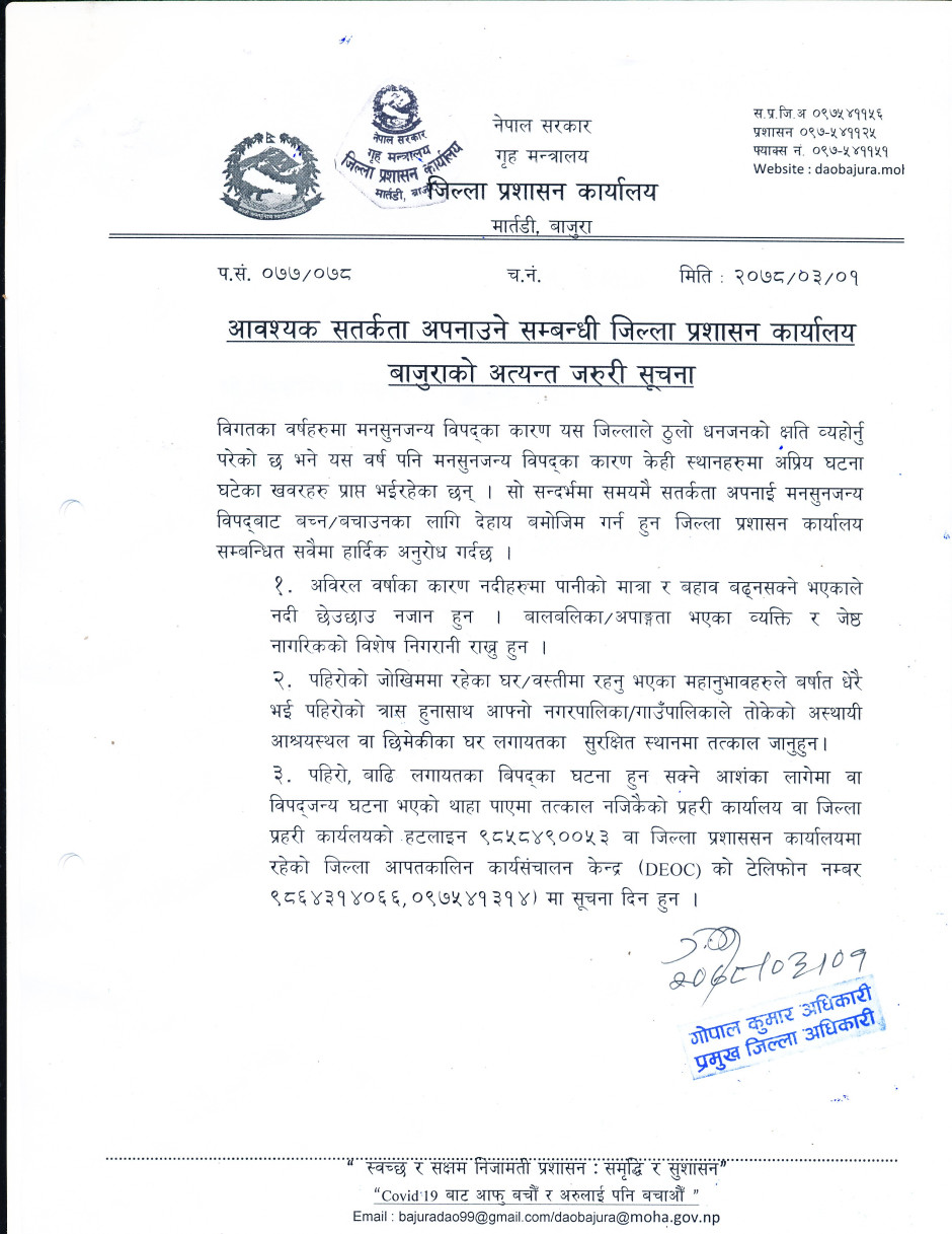 © सर्वाधिकार सुरक्षित जिल्ला प्रशासन कार्यालय,बाजुरा