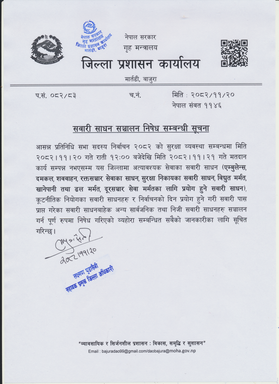 © सर्वाधिकार सुरक्षित जिल्ला प्रशासन कार्यालय,बाजुरा